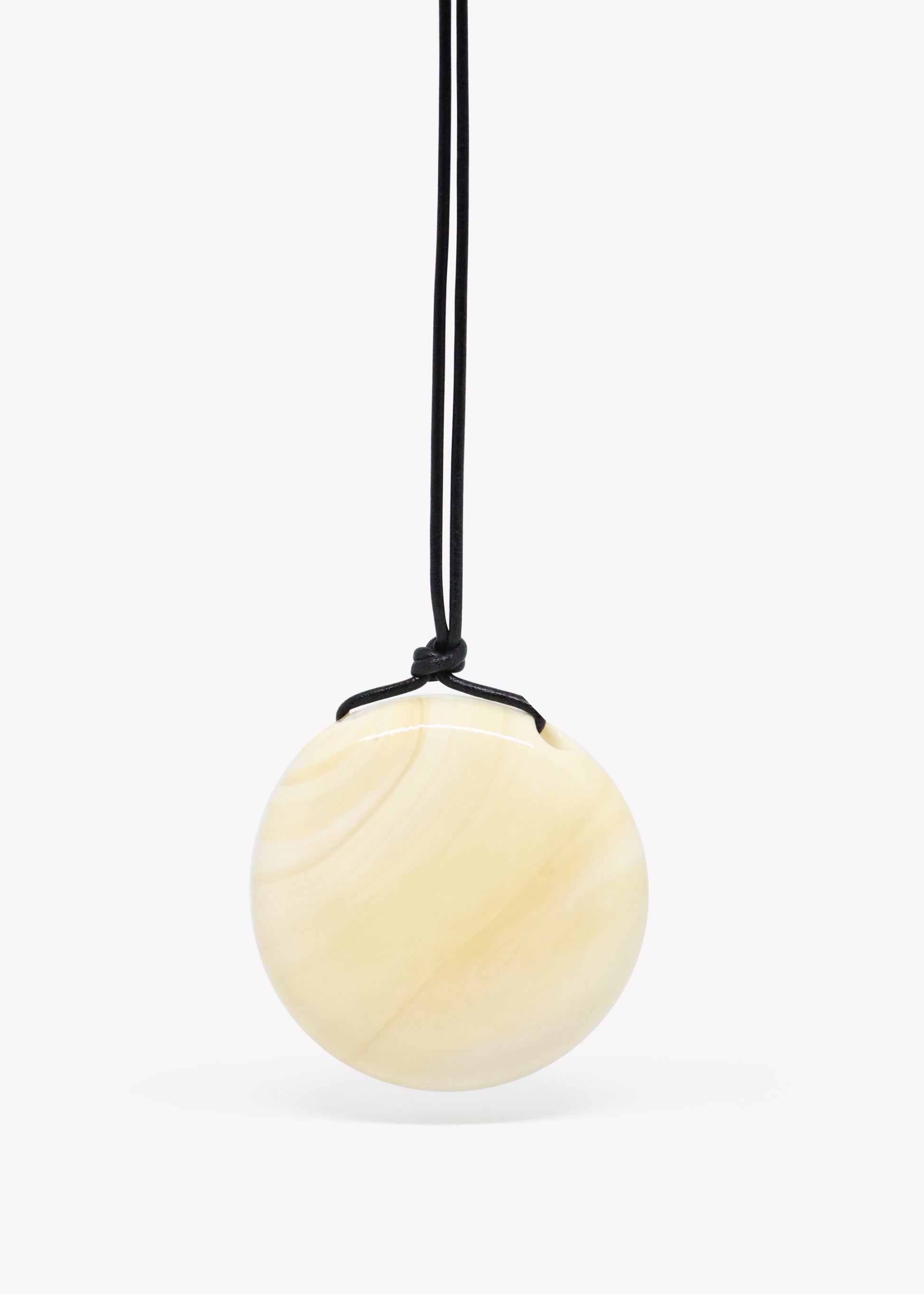 A delicate pendant crafted from Murano glass, suspended on a leather cord with sterling silver details.